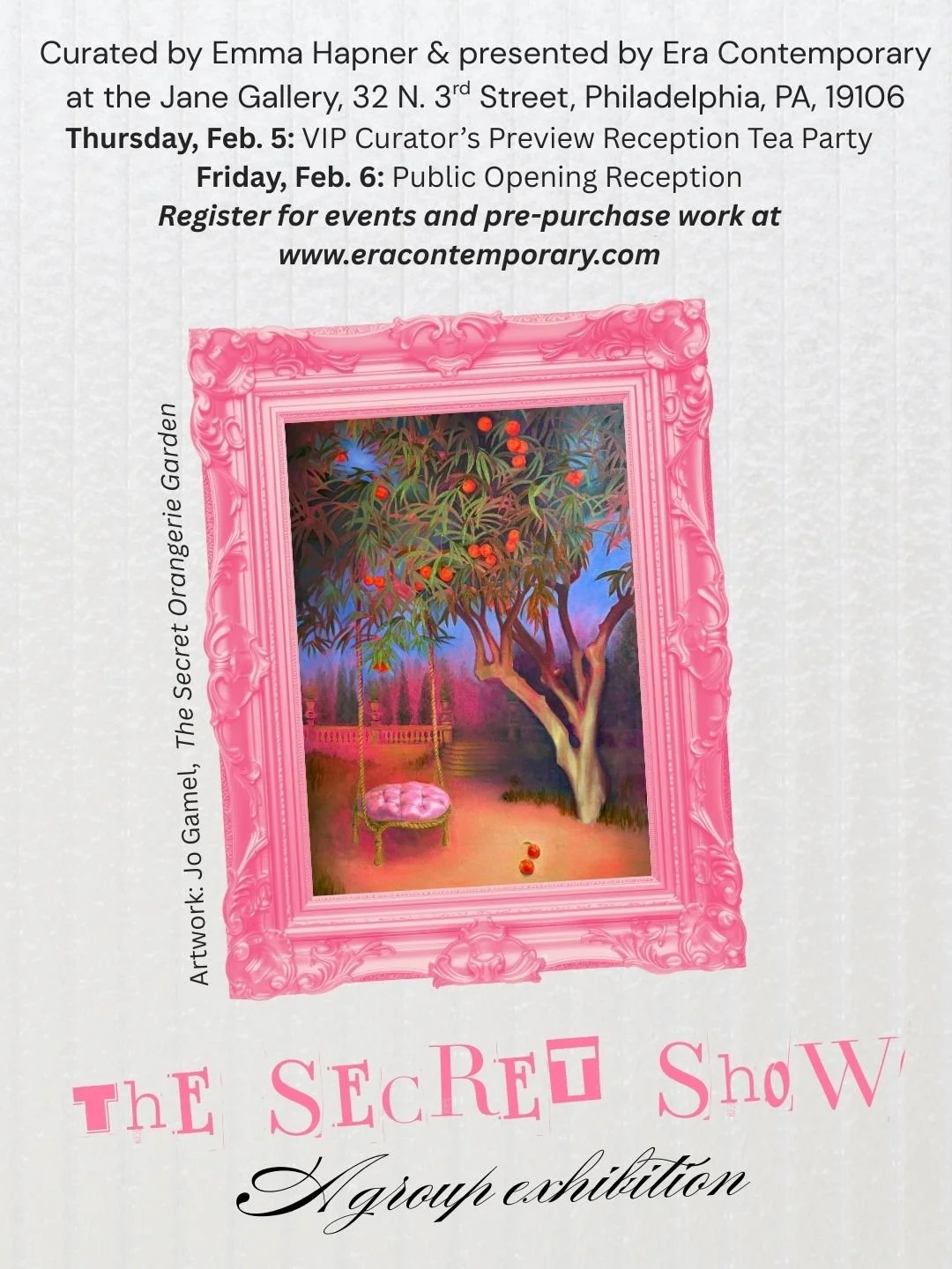 Immerse yourself in the colorful mystique of The Secret Show, curated by Emma Hapner and presented by Era Contemporary at The Jane Gallery (32 N 3rd Street, Old City). The exhibition’s aesthetic will draw inspiration from French boudoirs, Marie Antoinette, Rococo court affairs, and Valentine’s secrets in an atmosphere of elegance, intimacy, and intrigue.